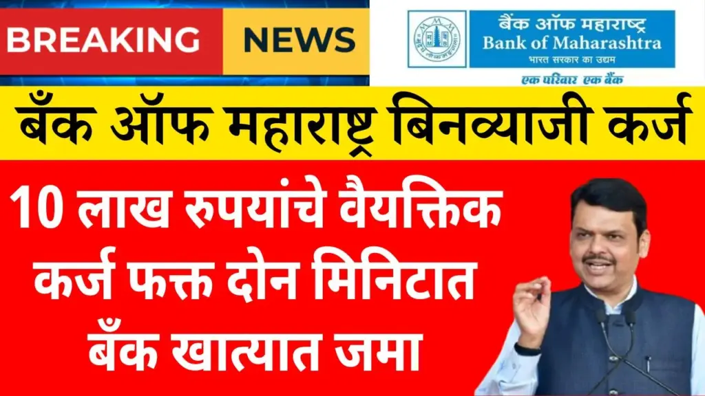Bank of Maharashtra Personal Loan मिळवा फक्त काही मिनिटांत. जाणून घ्या व्याजदर, पात्रता, अर्ज प्रक्रिया आणि EMI कॅल्क्युलेटरसह संपूर्ण माहिती. Mahabank Personal Loan Bank of Maharashtra Personal Loan 2025 – ही अशी योजना आहे जी ग्राहकांच्या तातडीच्या वैयक्तिक गरजांसाठी जलद आर्थिक सहाय्य देते. विवाह, शिक्षण, वैद्यकीय खर्च, घराची दुरुस्ती किंवा इतर कोणत्याही वैध कारणासाठी हे … Continue reading बँक ऑफ महाराष्ट्र फक्त काही मिनिटांत देत आहे 10 लाख रुपयांपर्यंतचे कर्ज – 10 Lakh Instant Loan, Eligibility, Interest Rate